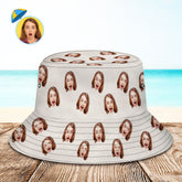Custom Your Photo Face Summer Bucket Hat Fisherman Hat - White