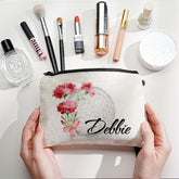 Custom Name Birth Flower and Golf Ball Design Canvas Makeup Bag - Personalized and Unique