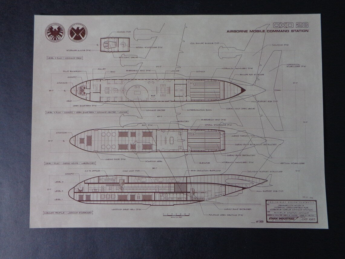 - Plane layout of the “CXD 23â€?Airborne Mobile Command Station, and the design drawing is from Stark Industries.