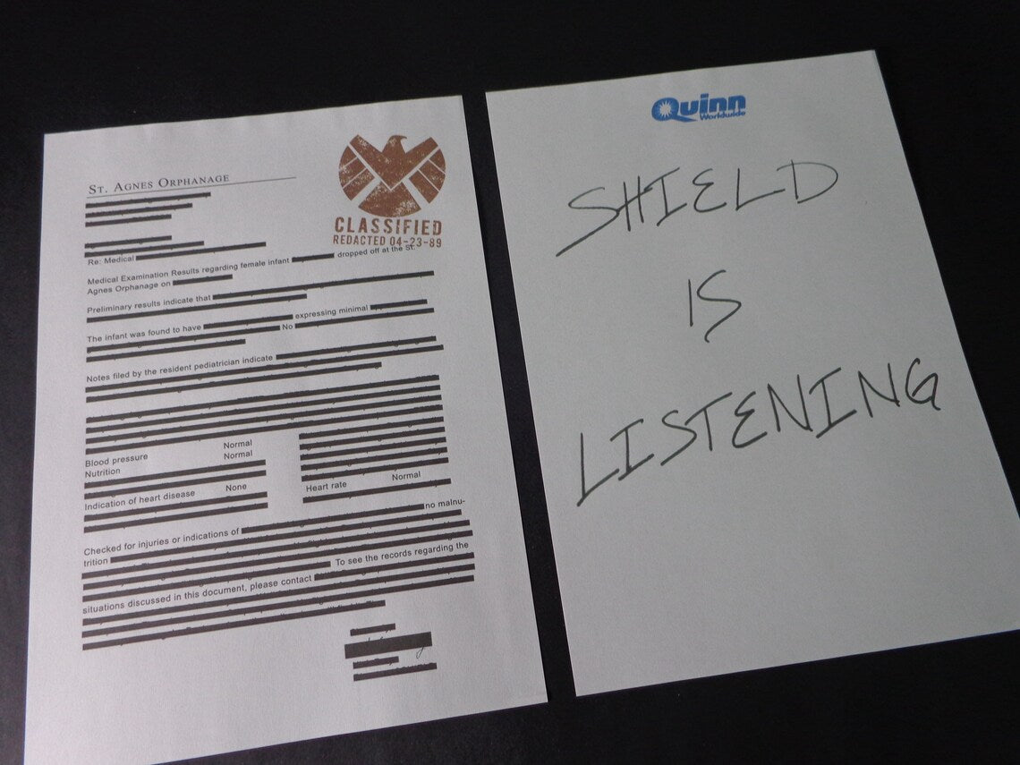- The paper that Skye wrote "SHIELD IS LISTENING " on it.