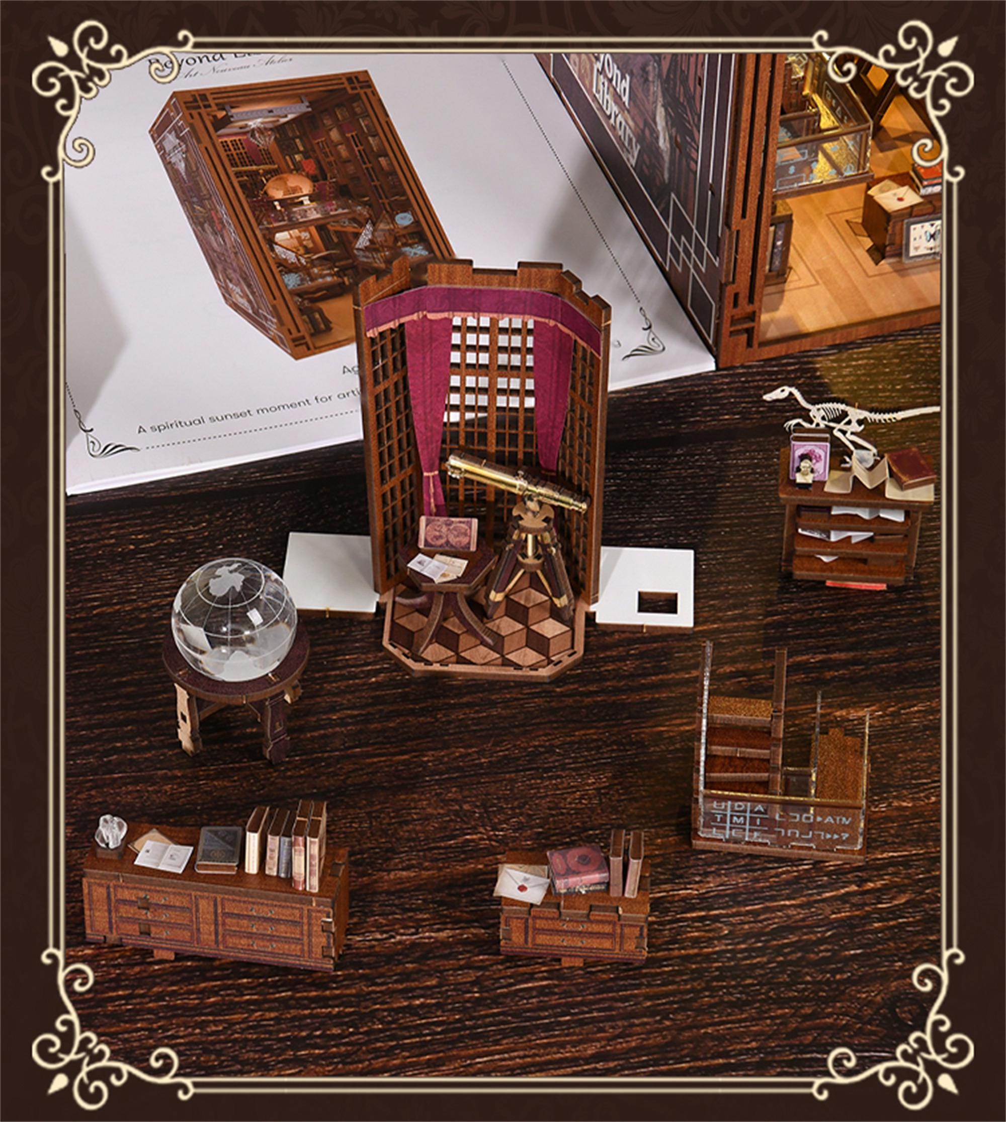Handcrafted Detailing: Every part of the library, from the wooden bookshelves to the tiny artifacts, has been meticulously designed for realism and whimsy.