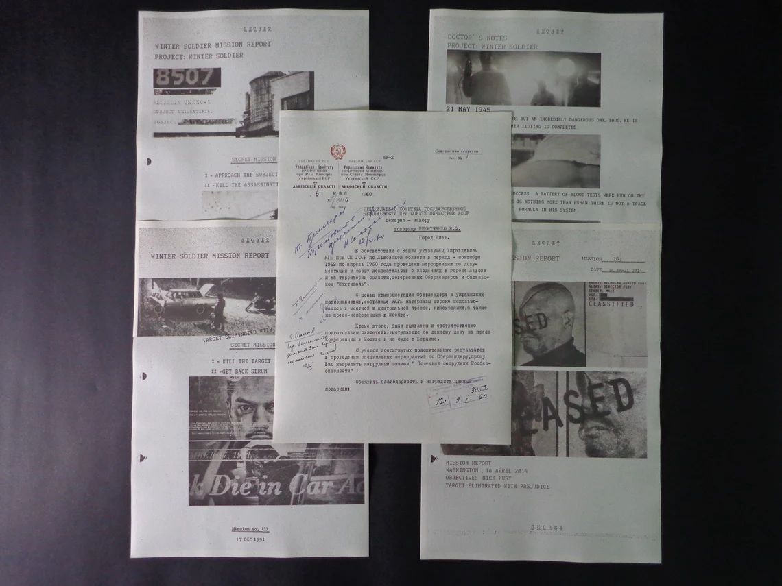 - 5 secret paper, including winter soldier mission report, doctor’s notes etc.
