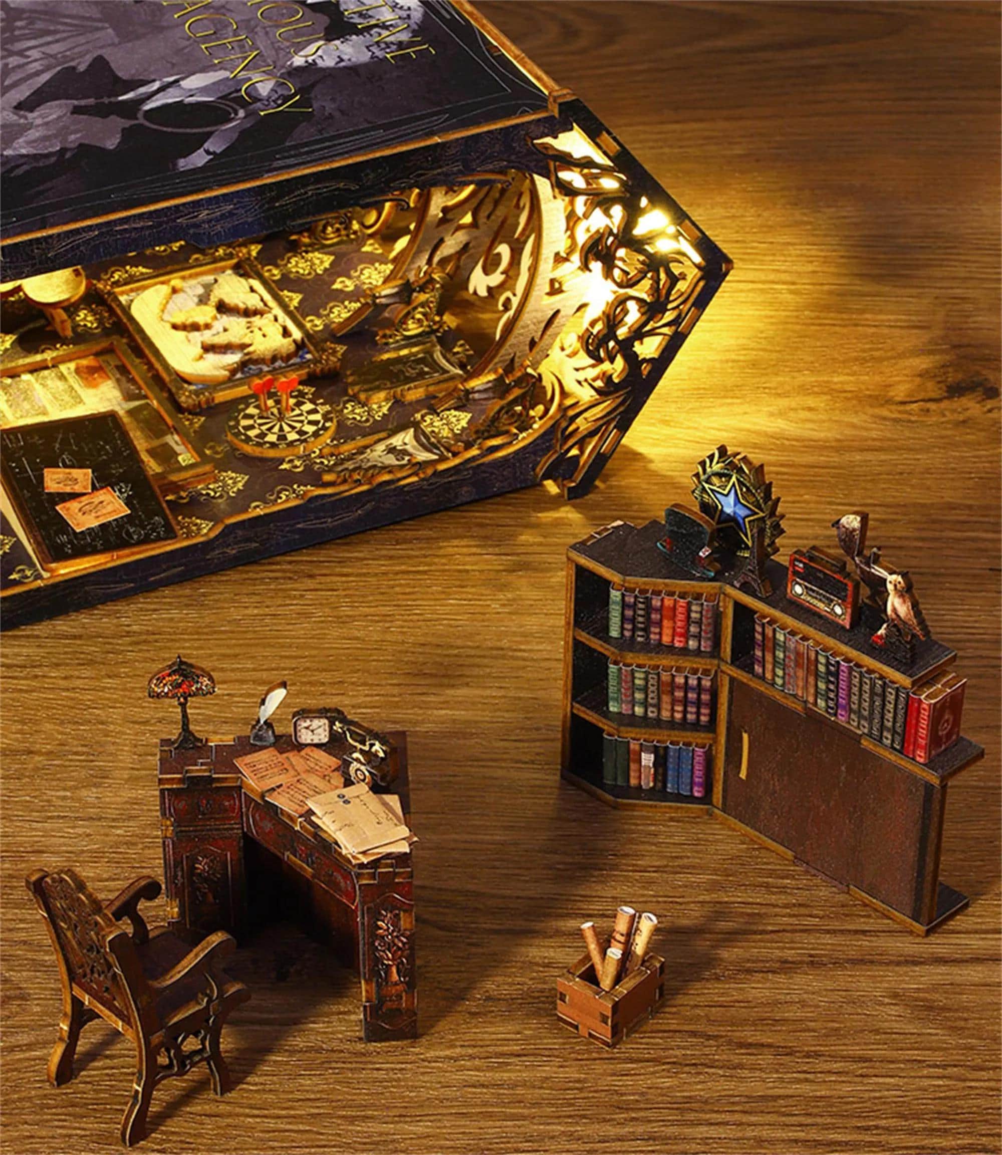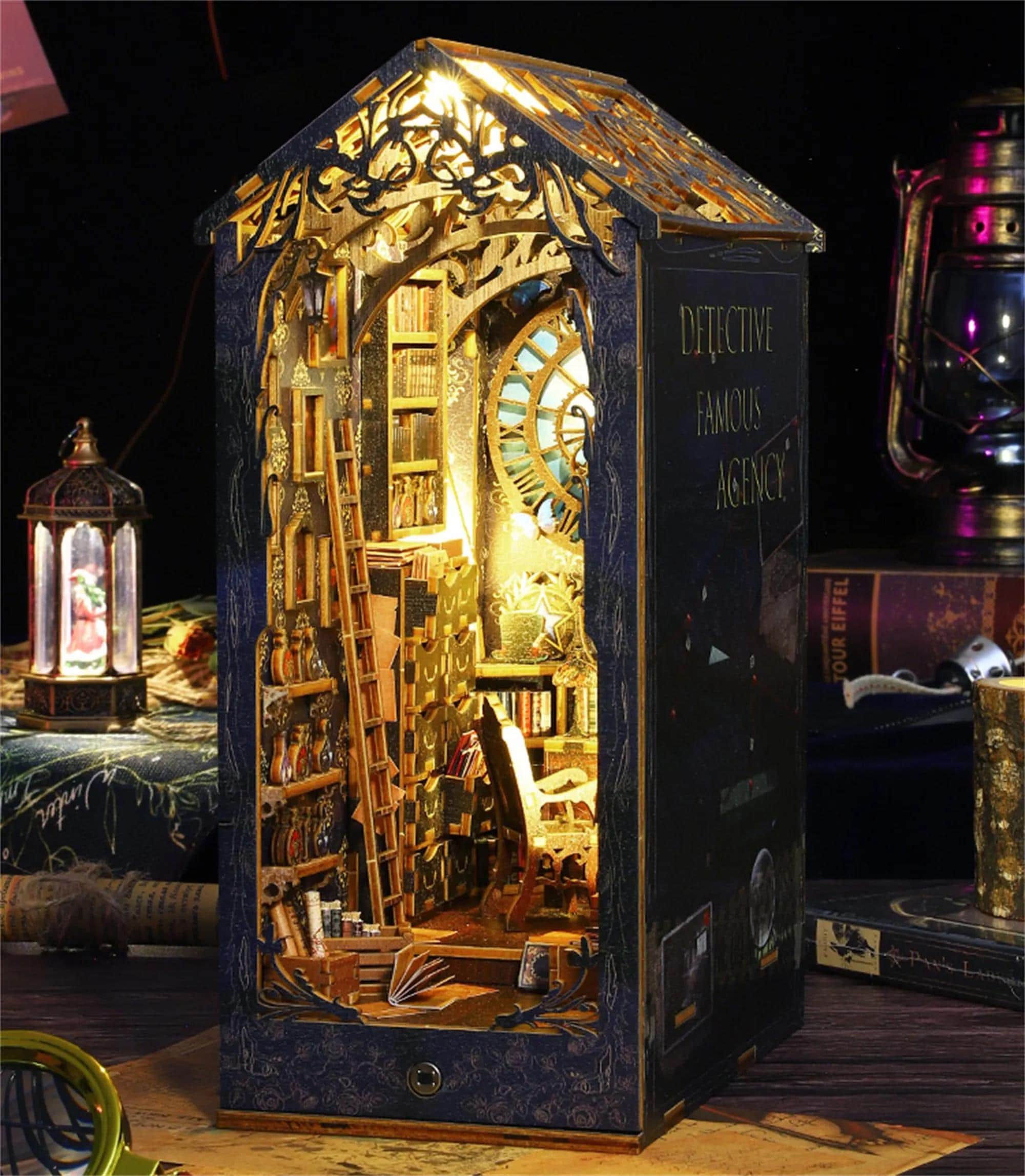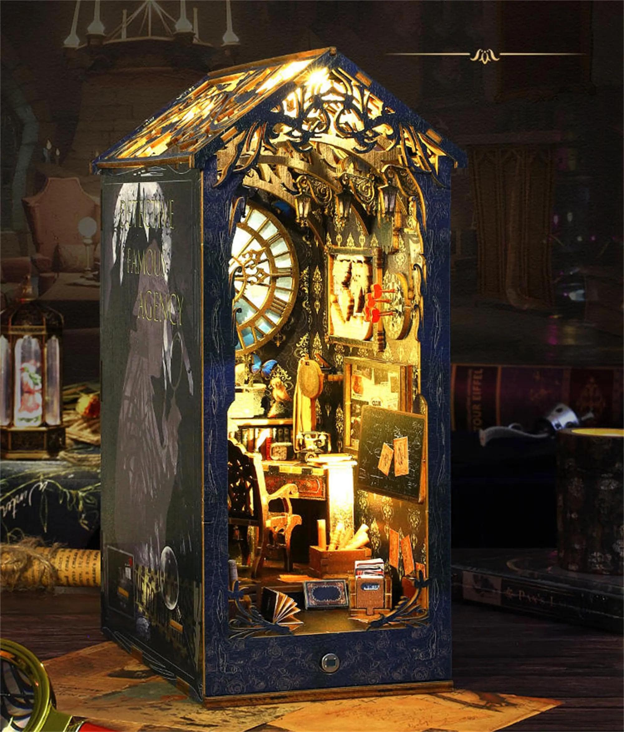 Step into the enigmatic world of sleuths and secrets with the "Detective Agency" book nook. This meticulously crafted 3D miniature model is more than just a decorative piece; it is a portal to the thrilling adventures of a classic detective. The design captures the essence of a bygone era, where mysteries were unraveled in the dim glow of desk lamps, and every object in the room told a story.