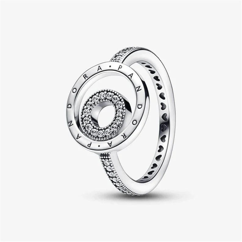 Pandora Signature Logo Circles Pav¨¦ Ring,S925 Sterling Silver Ring,Gift for Her