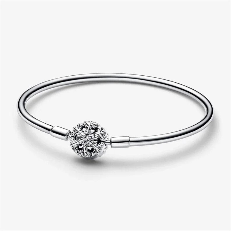 Pandora Moments Sparkling Snowflake Clasp Bangle,S925 Sterling Silver Charm Bracelet,Gift for Her