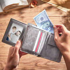 Our Photo Wallet will capture a moment that is gone forever. The photo will never fall off! This photo wallet is designed to provide you with a quick and easy way to create a unique and useful souvenir. Advanced fabric and the classic design make the wallet even more stylish. The design is very traditional, the size is perfect, the details are very gorgeous, really has the appearance of a high-end wallet. Once you place an order, you'll be able to preview how it will appear on the wallet. Please do remember high-resolution picture will come out better than the preview. This wallet is a great birthday gift idea for all ages.