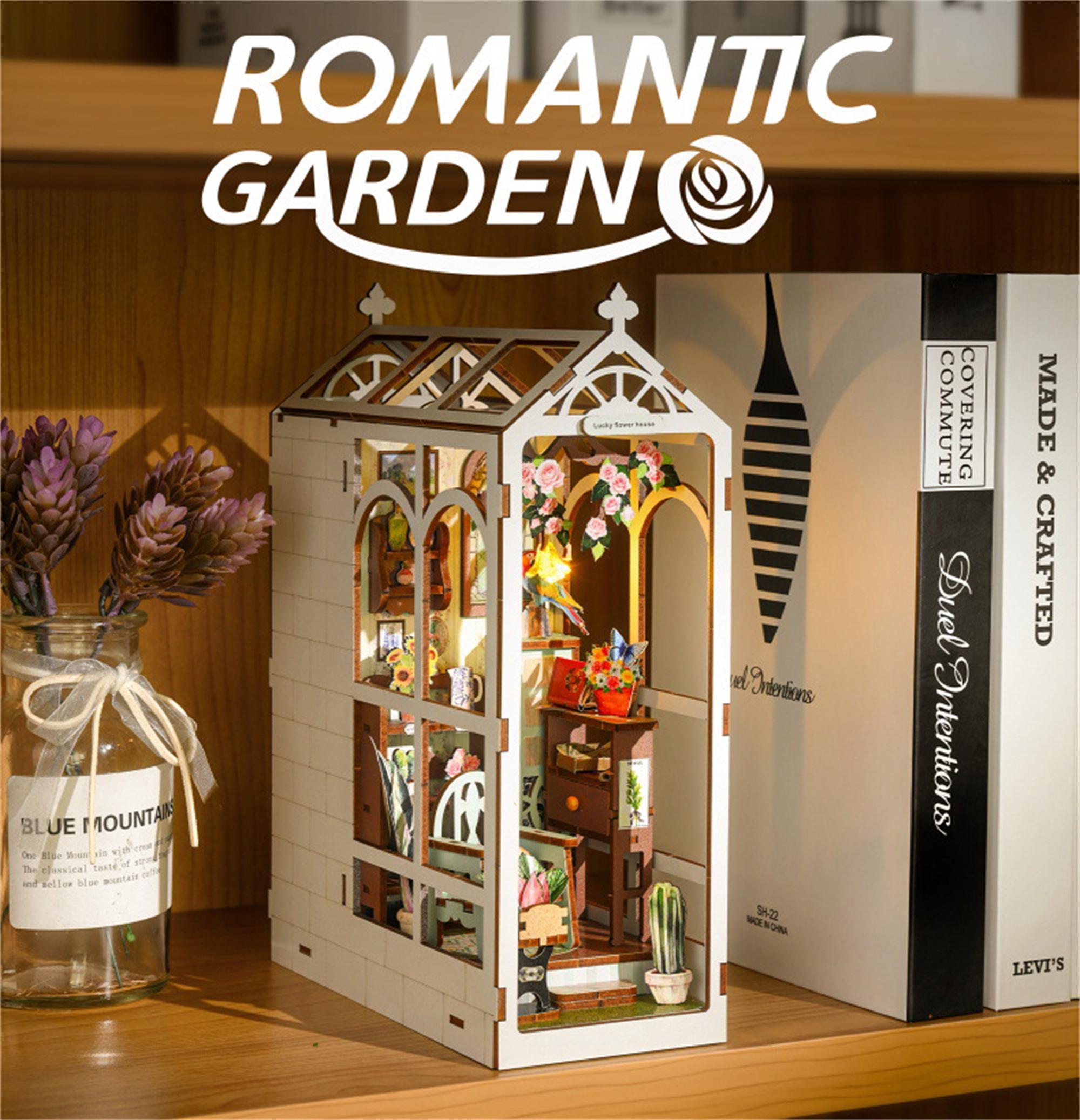 The Romantic Garden Booknook is a charming and beautifully crafted miniature world that brings the serenity and beauty of a garden into your home. This intricate model is designed to resemble a small greenhouse, filled with vibrant flowers, lush greenery, and tiny details that evoke a sense of peace and tranquility.
